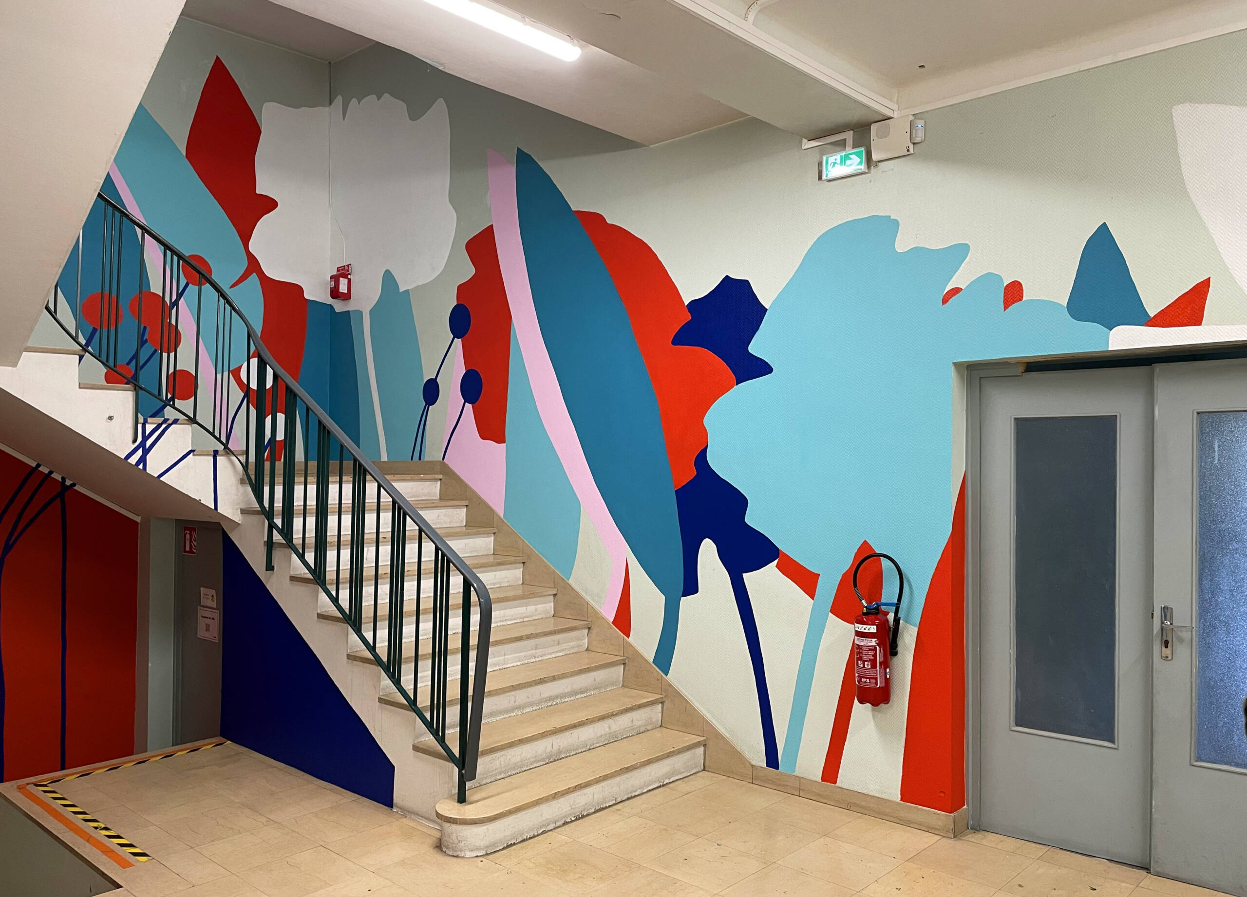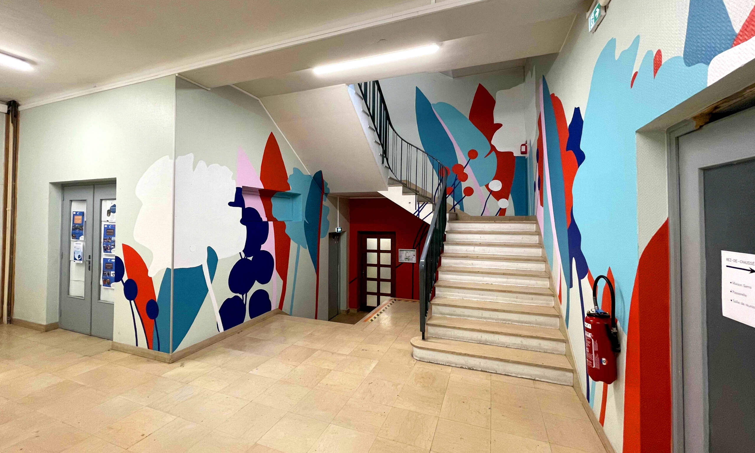 Fresque pour le hall d'entrée des Ateliers Briand, réalisée par les jeunes de l'Année Lumière
