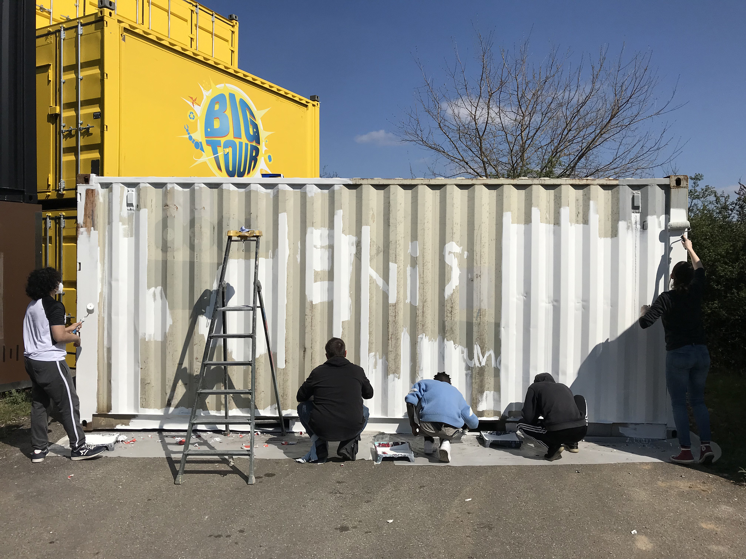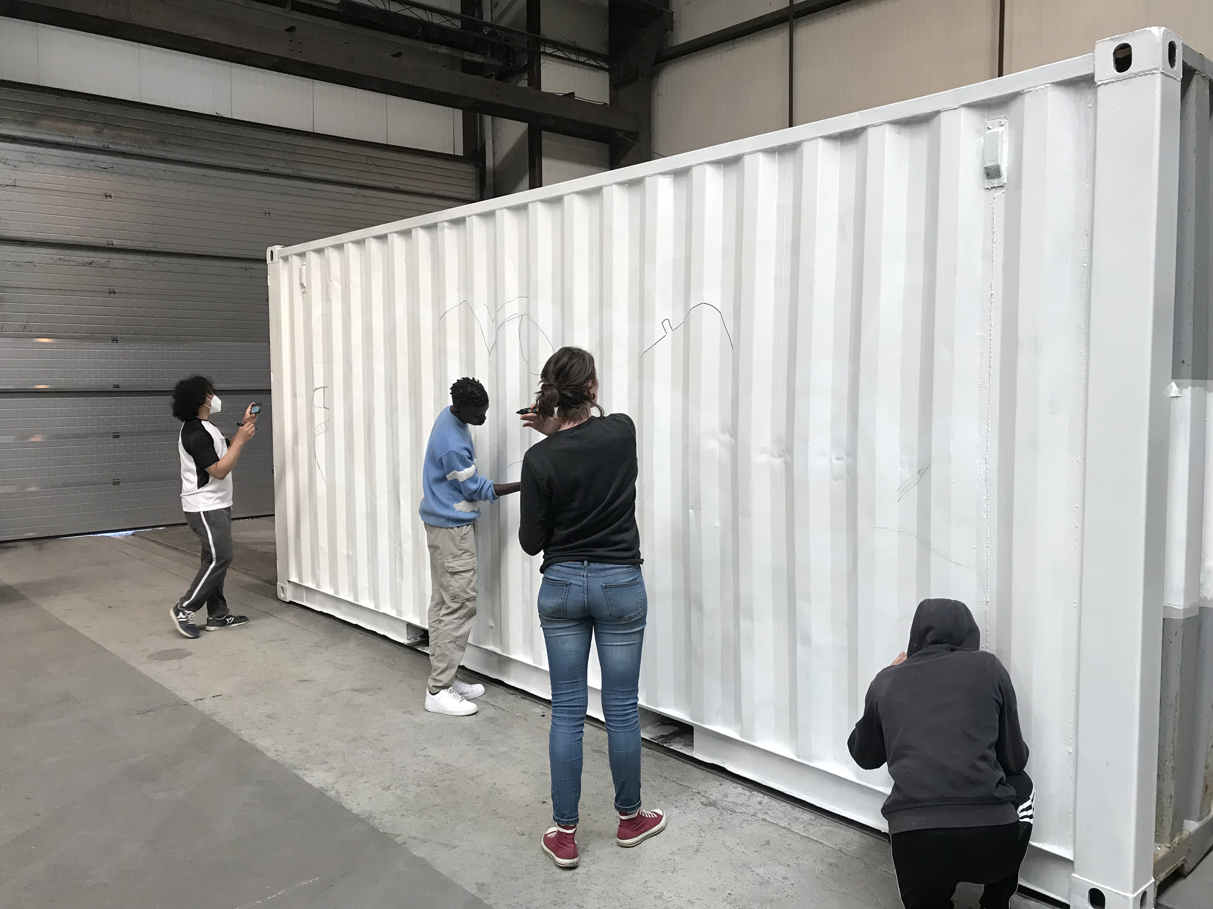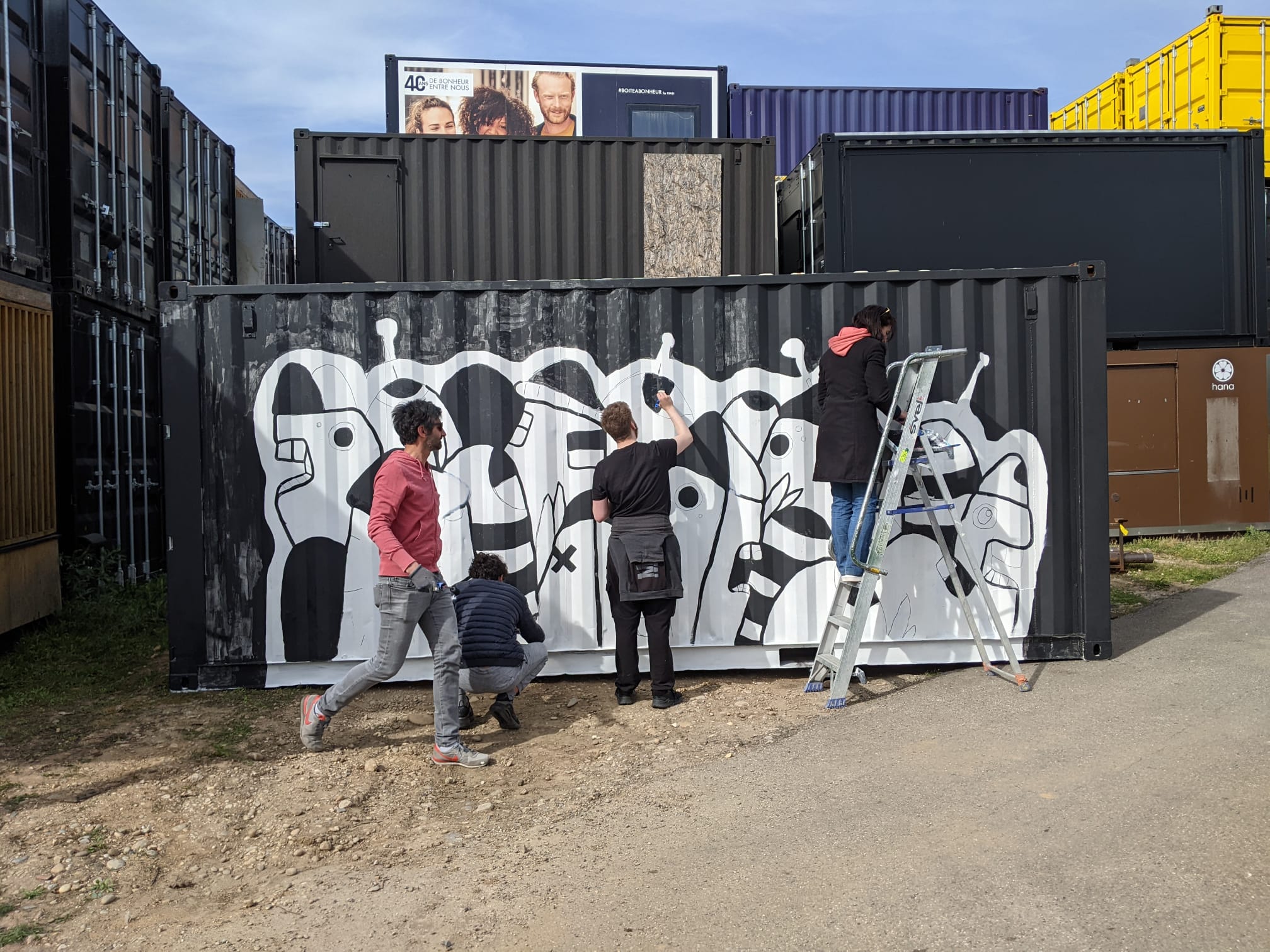 Fresque réalisée par les jeunes de la Fondation OVE, présenté lors d'un événement de la Métropole : La charte des 1000 entreprises engagées