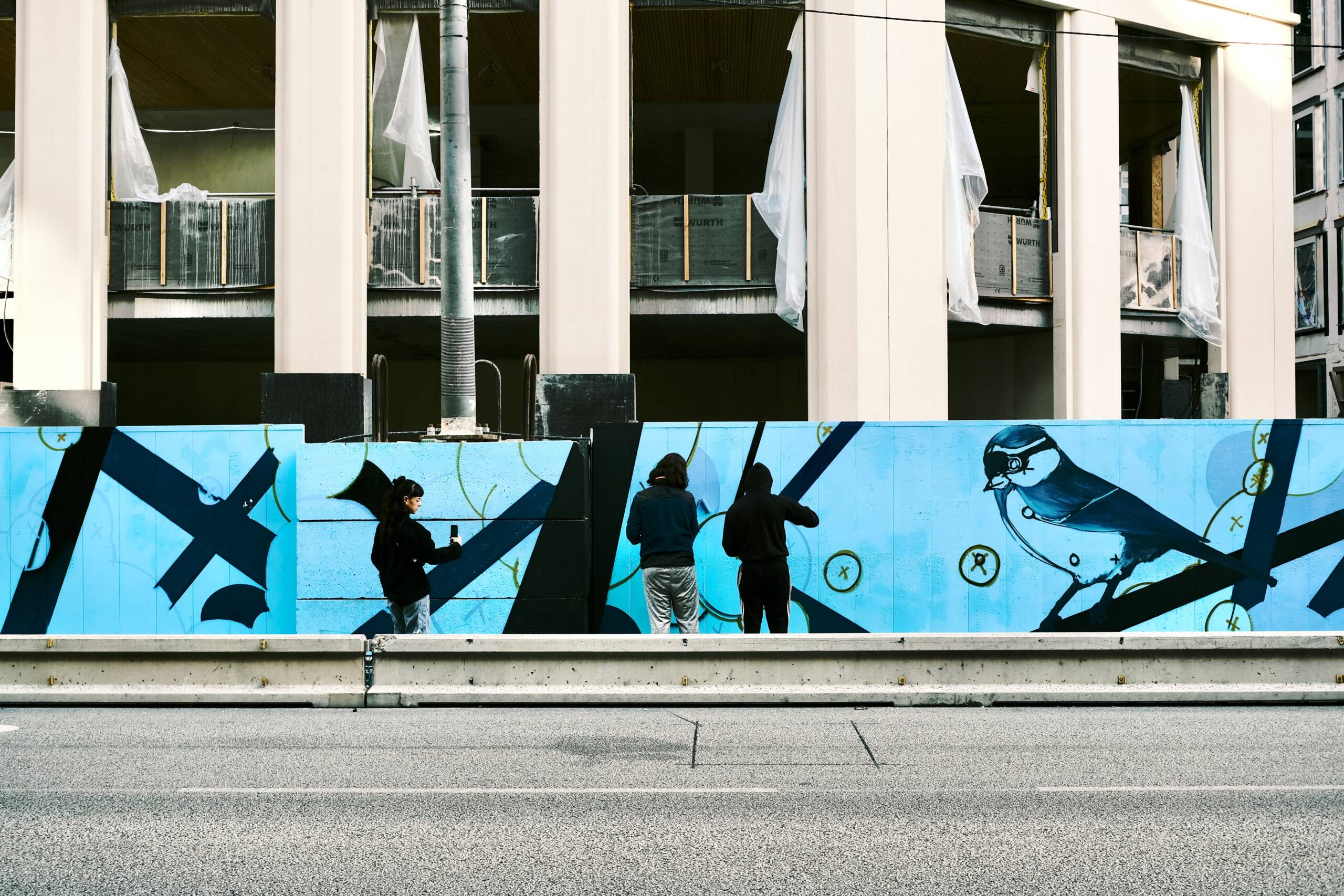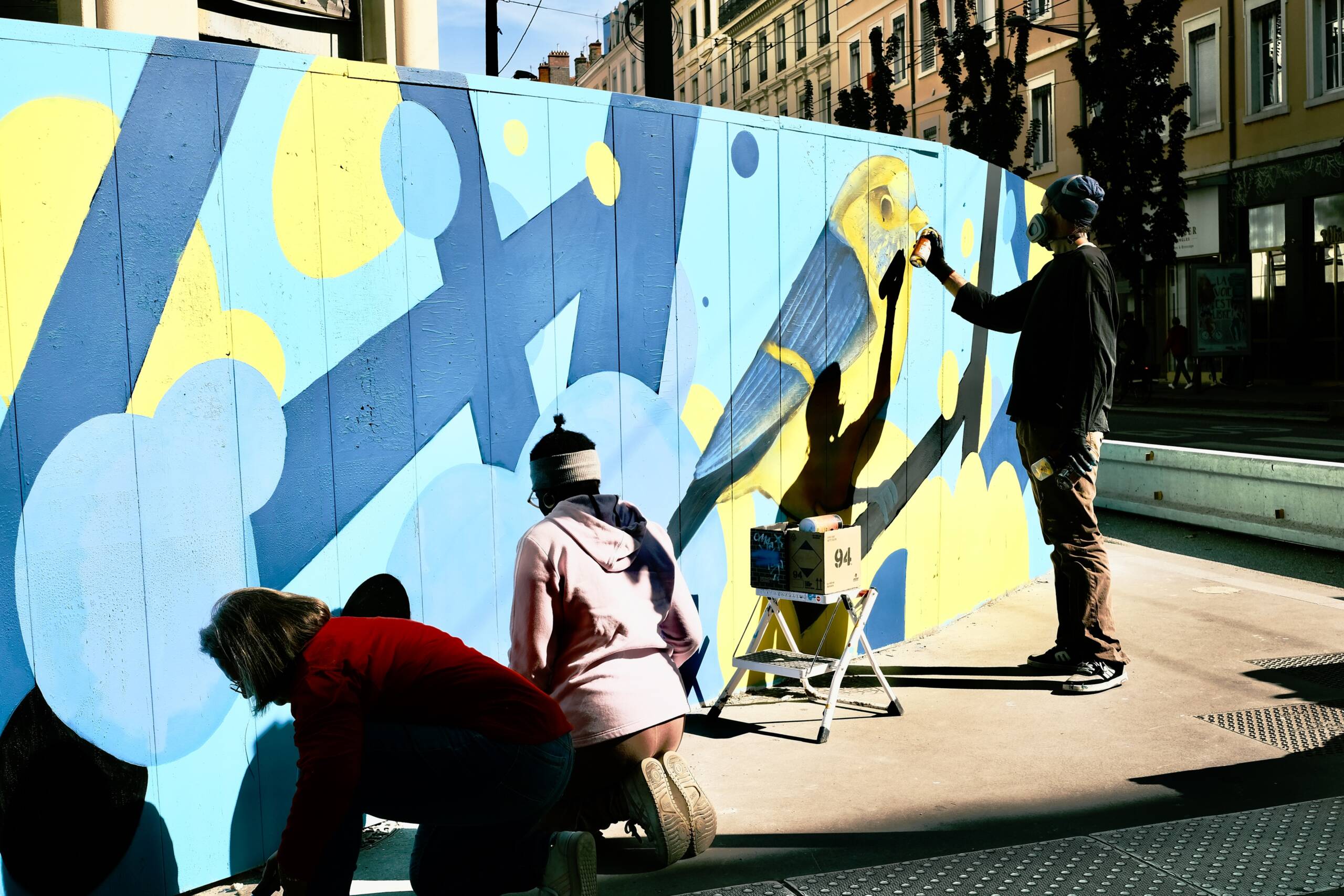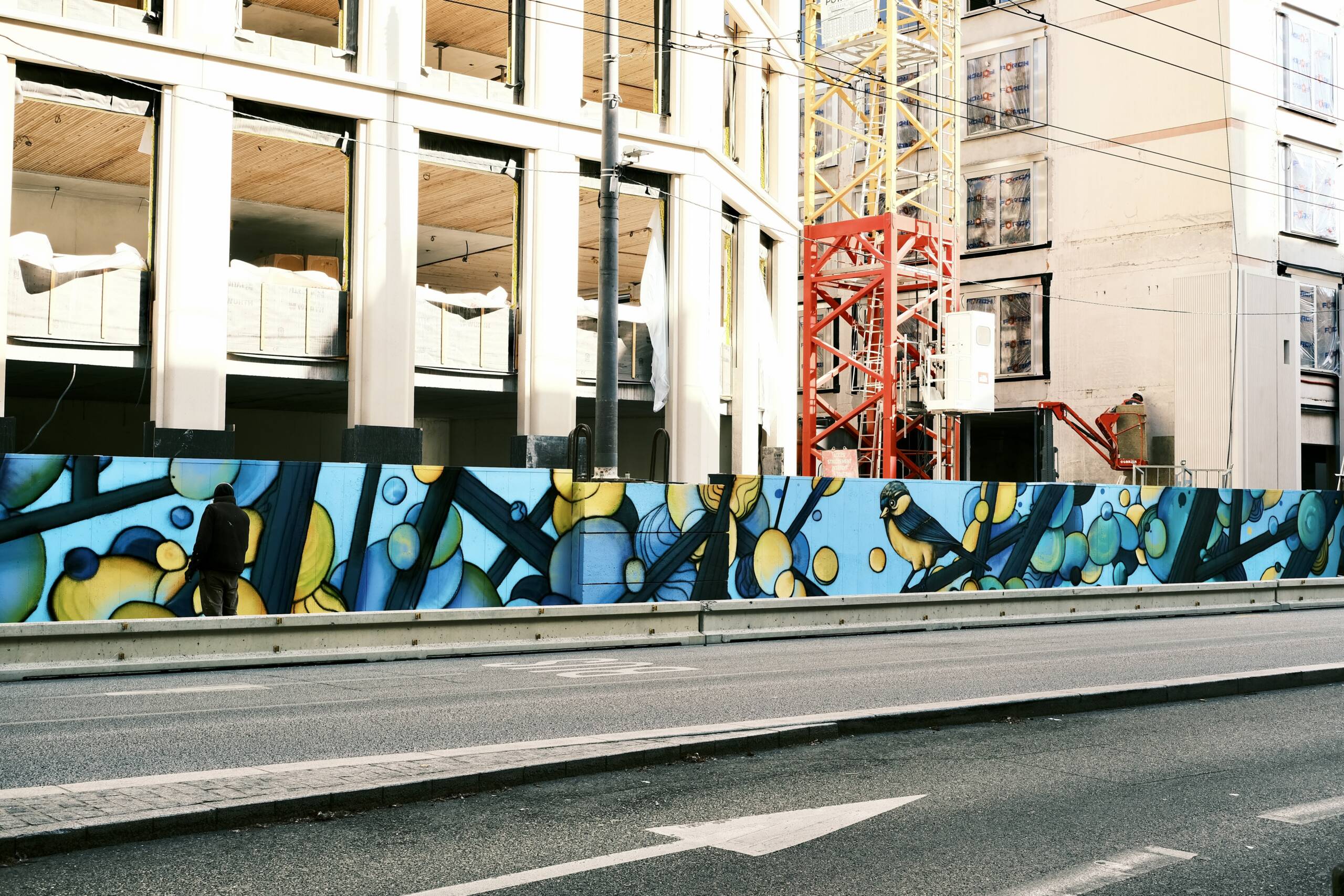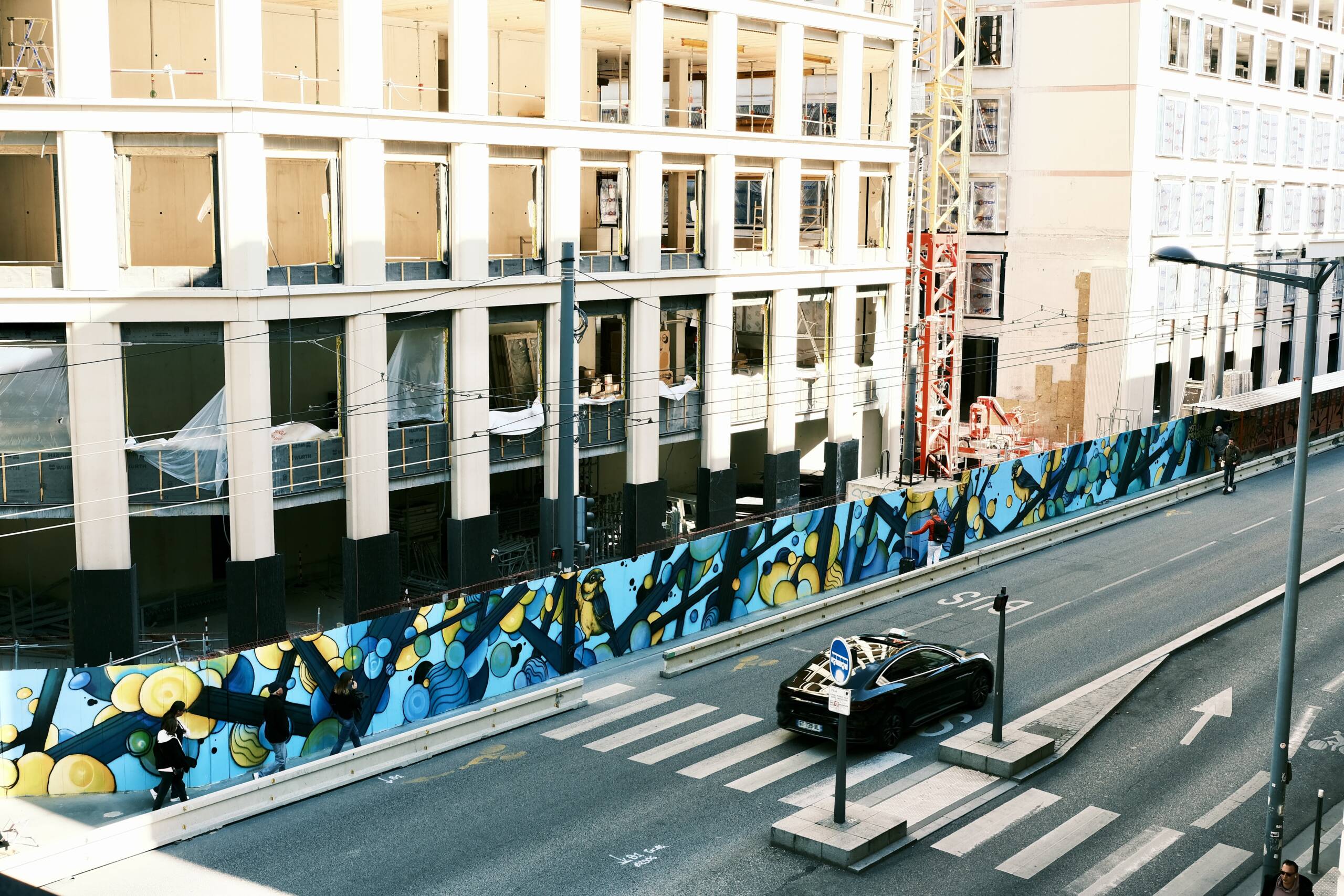 50m linéaires sur palissade de chantier avec les jeunes de la Fondation OVE et l'artiste Osru.