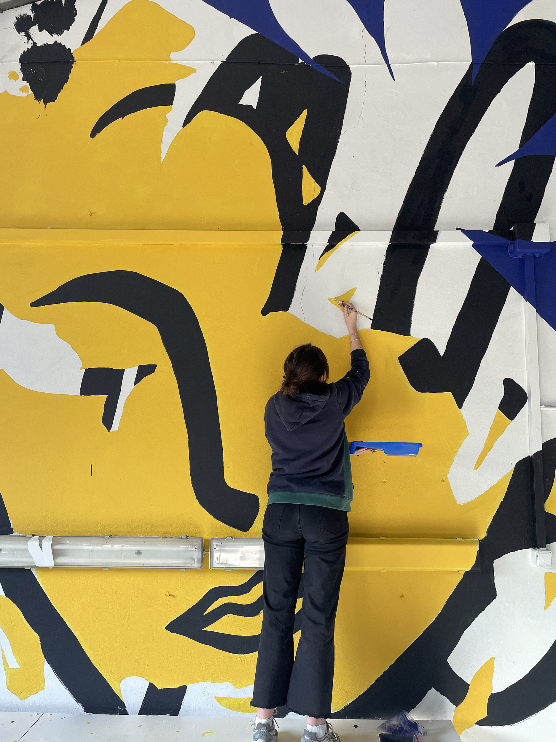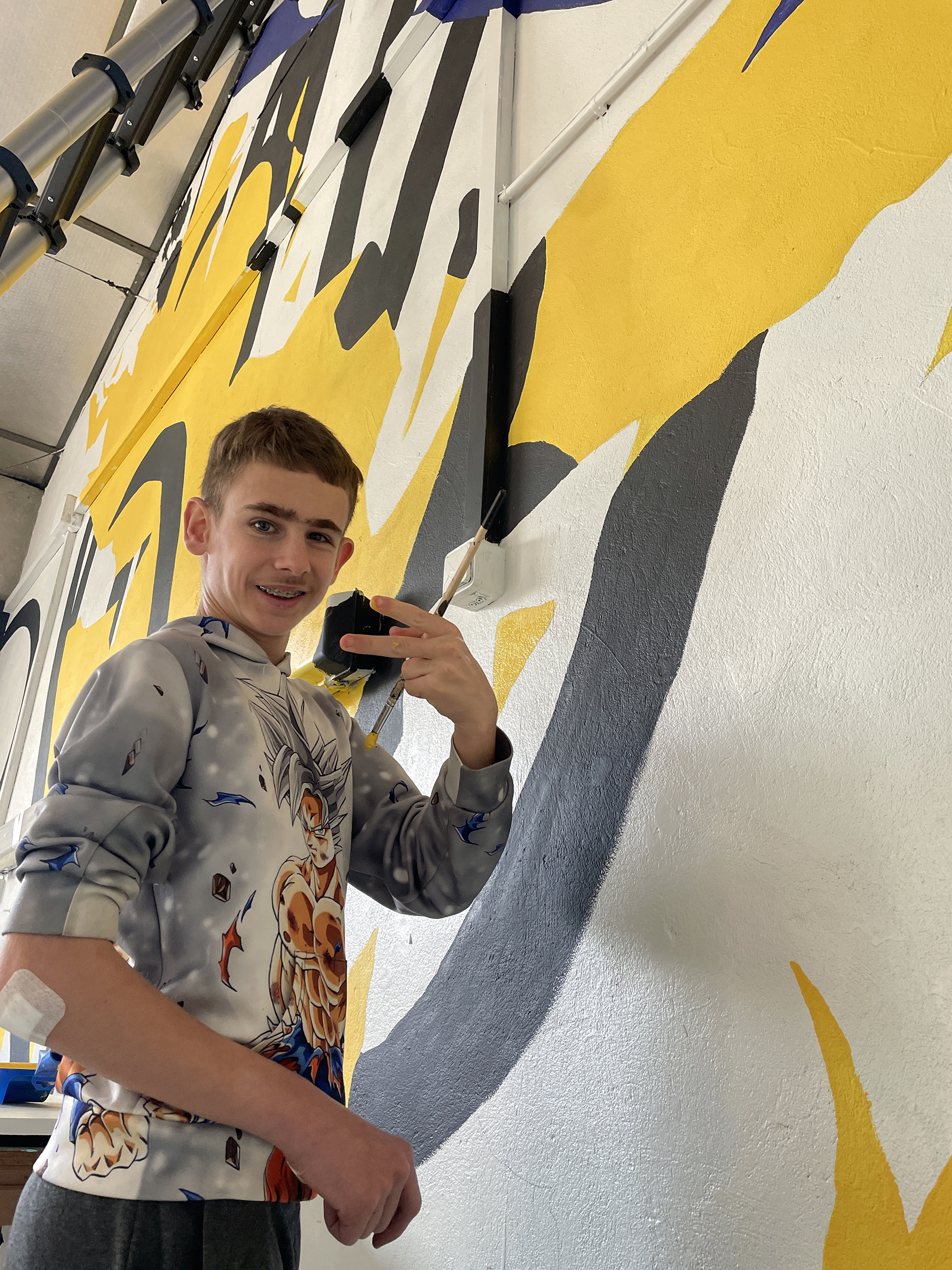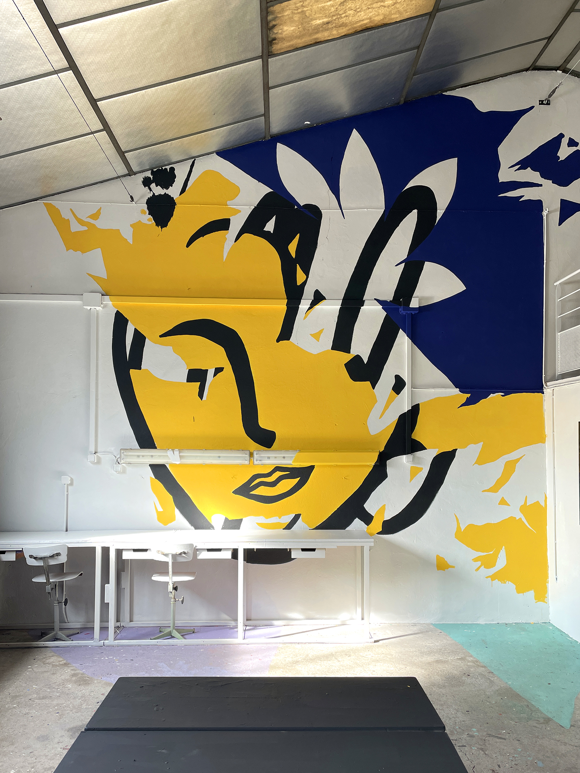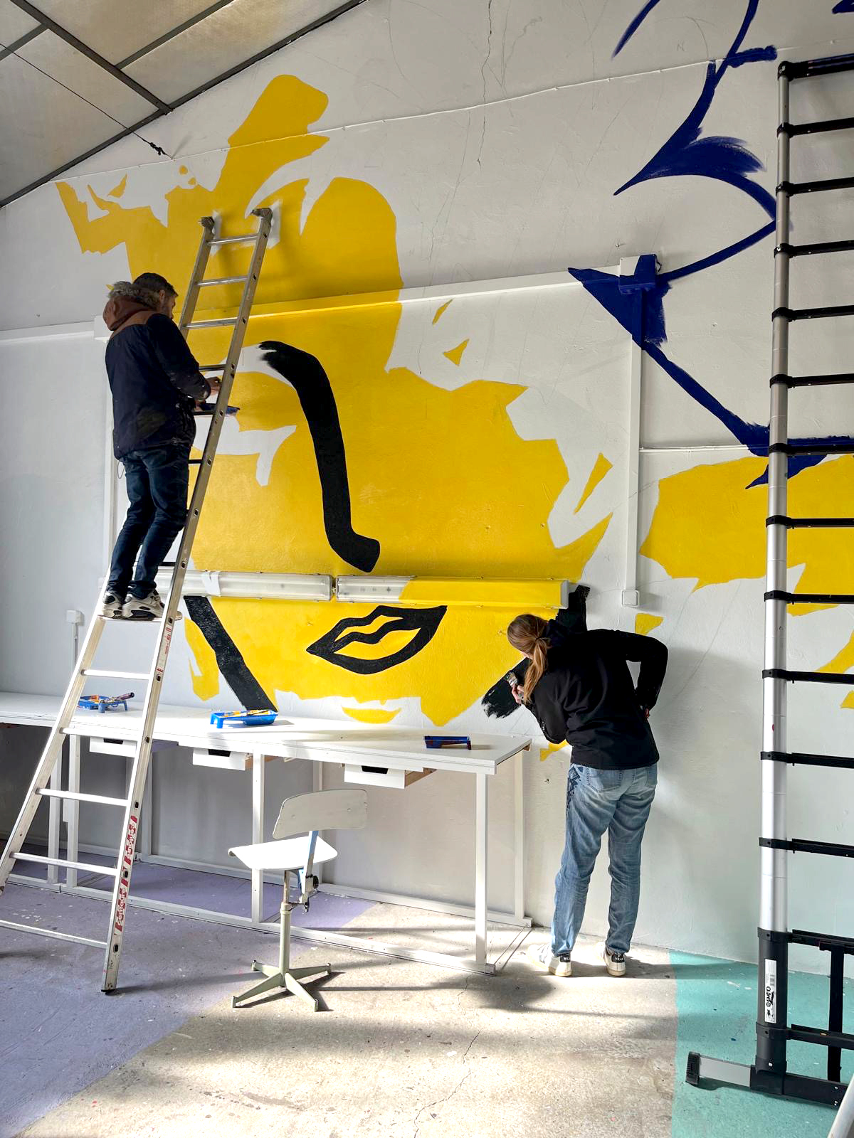 Fresque à l'atelier à Vaux en Velin, réalisé par Don Mateo et les jeunes de la Fondation OVE.