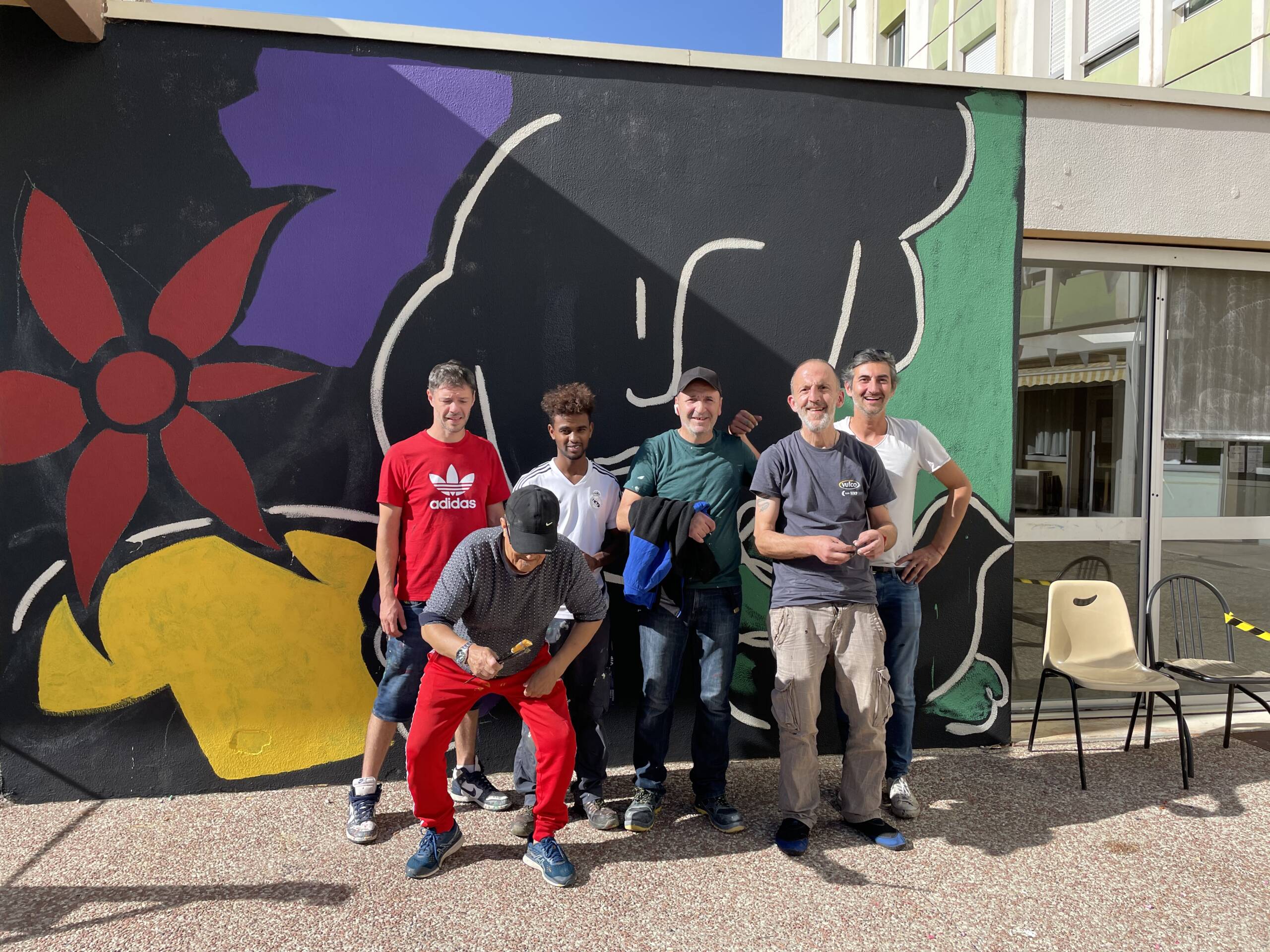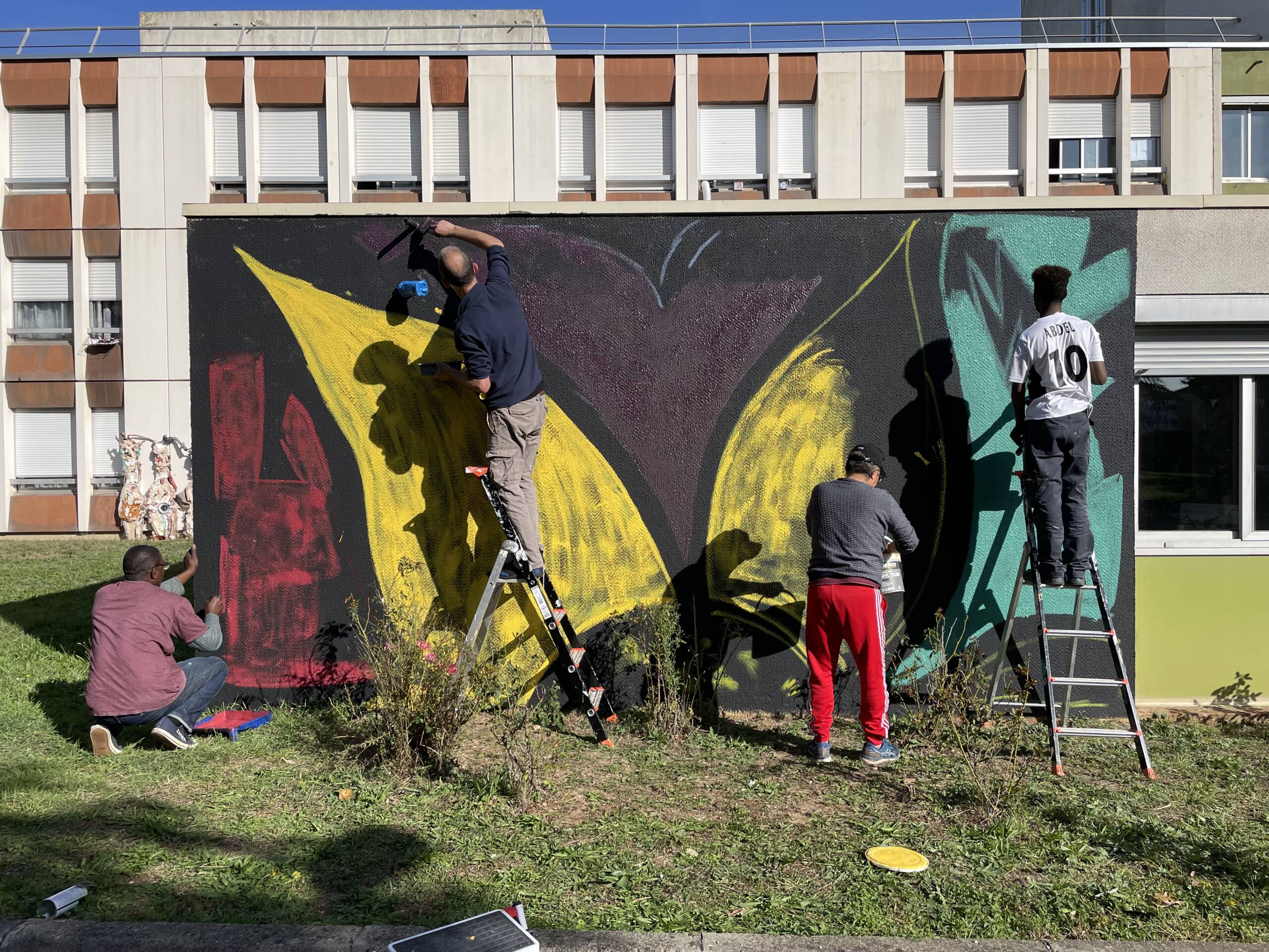 3 fresques réalisées avec les résidents des "Grandes Voisines". Avec le soutien de Capsa Container / L'armée du Salut / Plateau Urbain