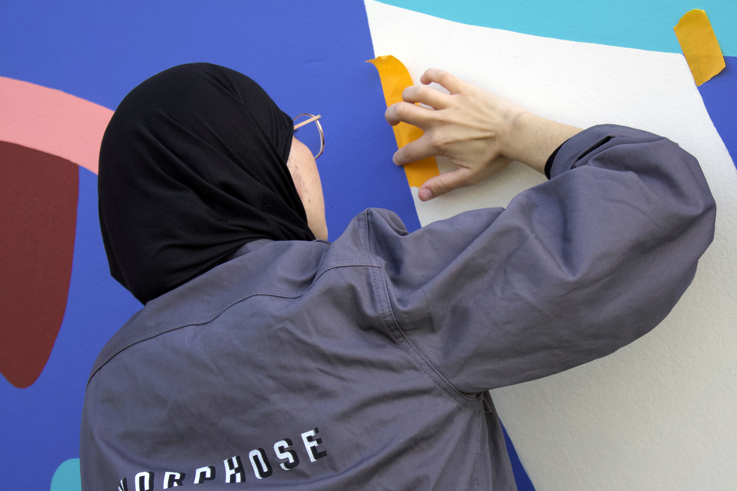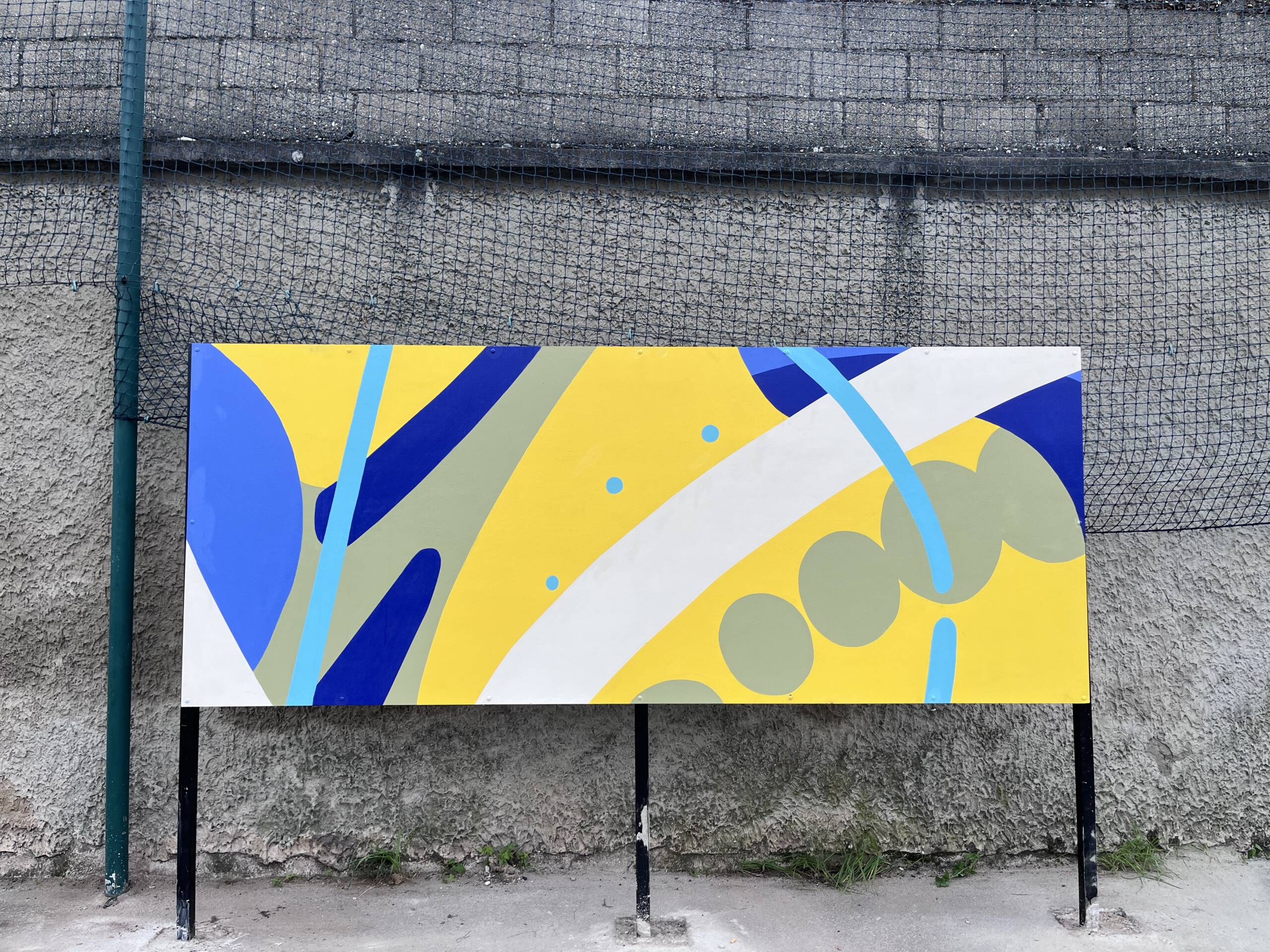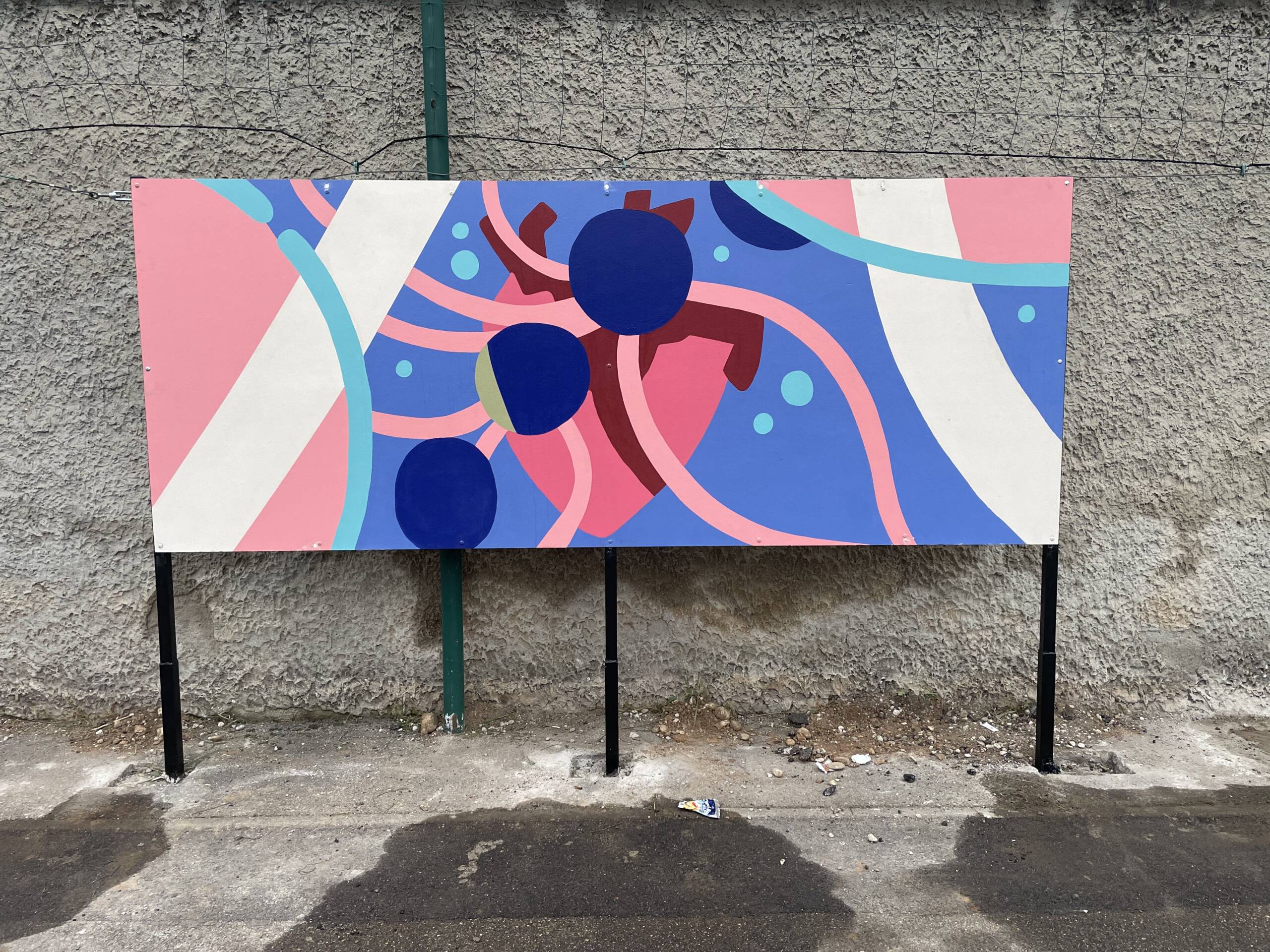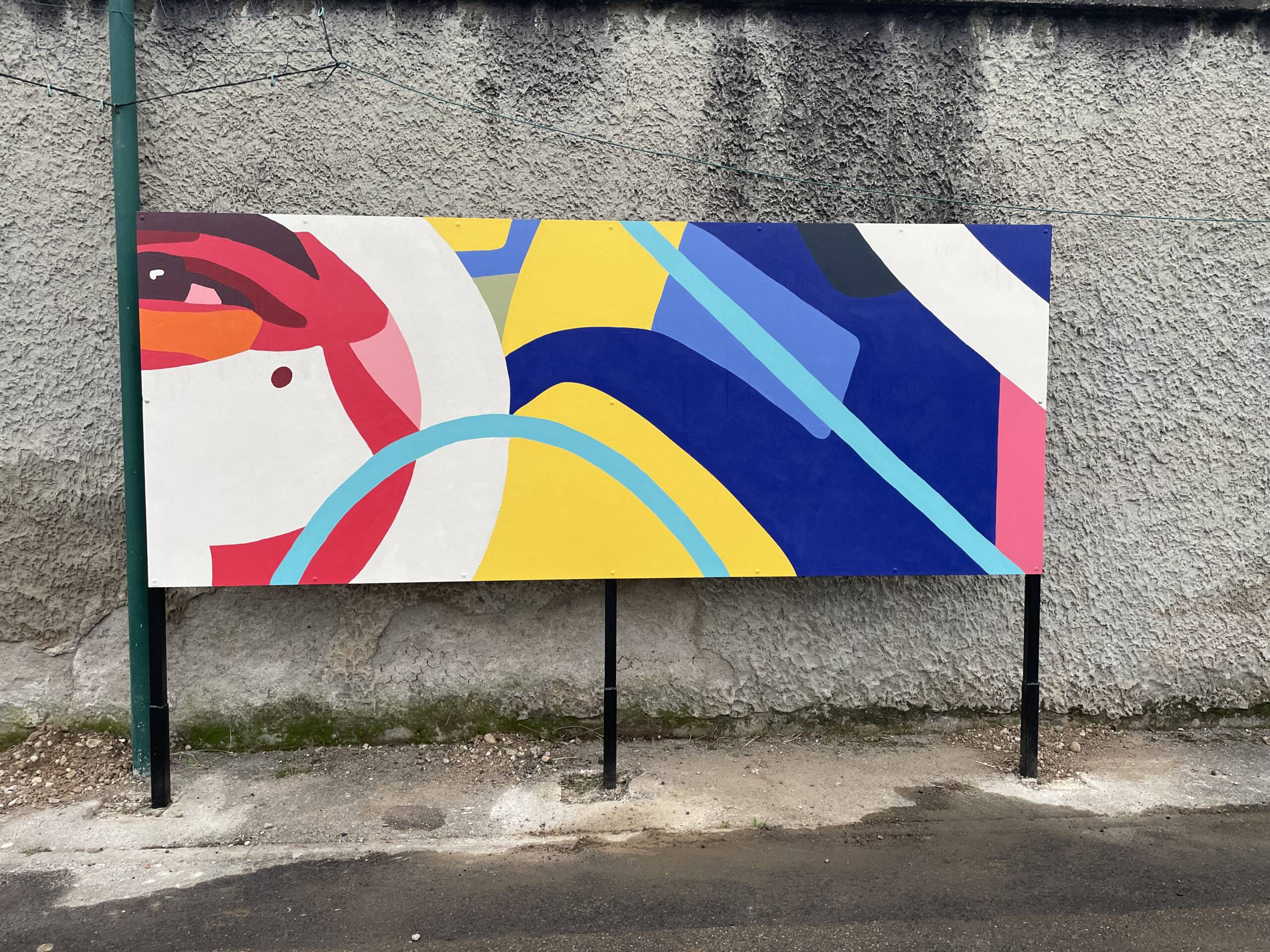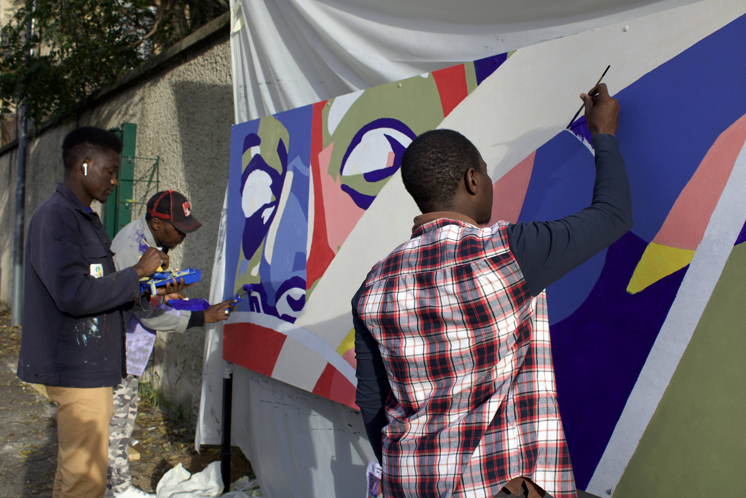 8 panneaux réalisés par une 20aine de bénéficiaires : Forum réfugiés, Centre Social Gisèle Halimi & Sauvegarde69, représentant des portraits des résidents du quartier.