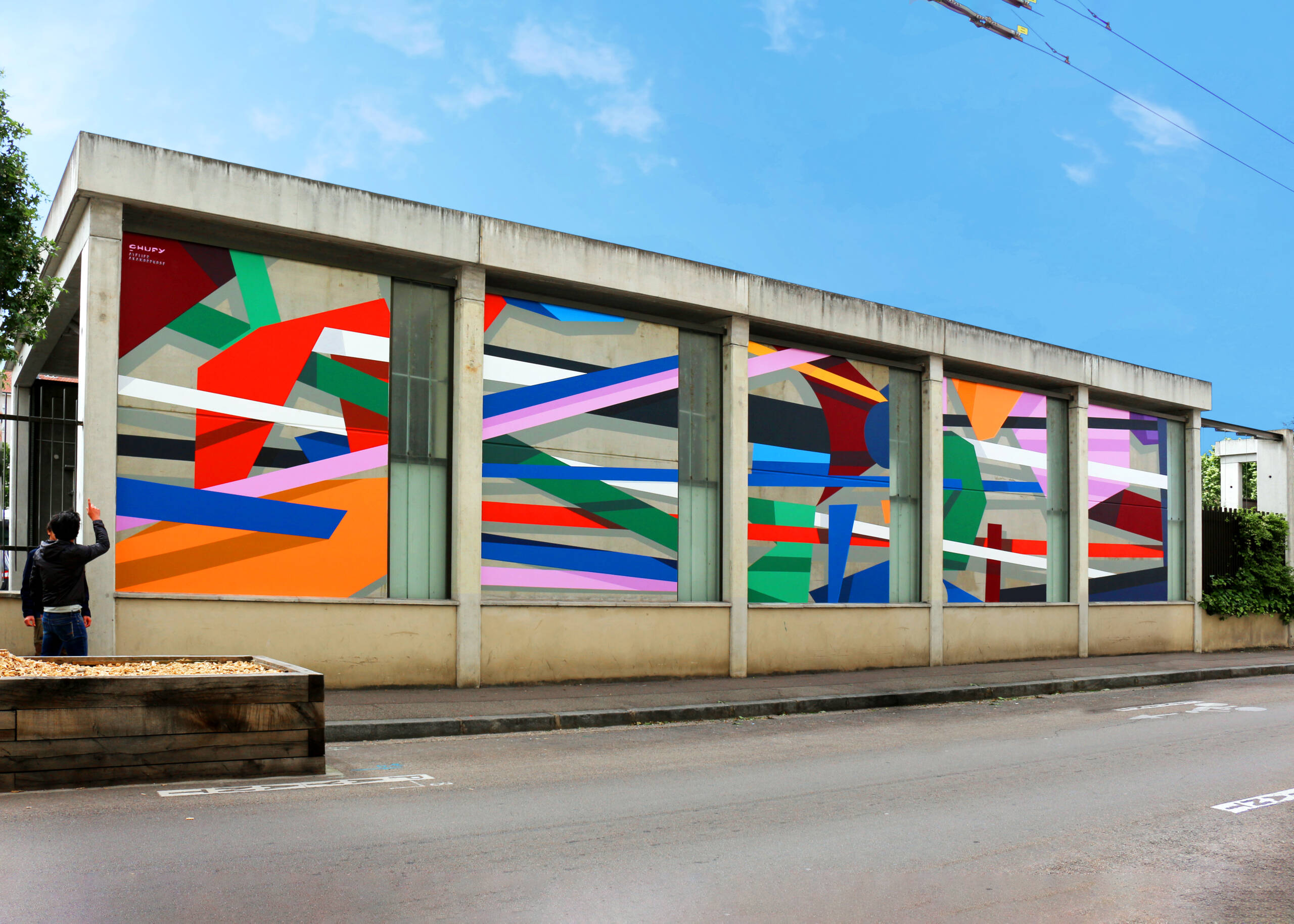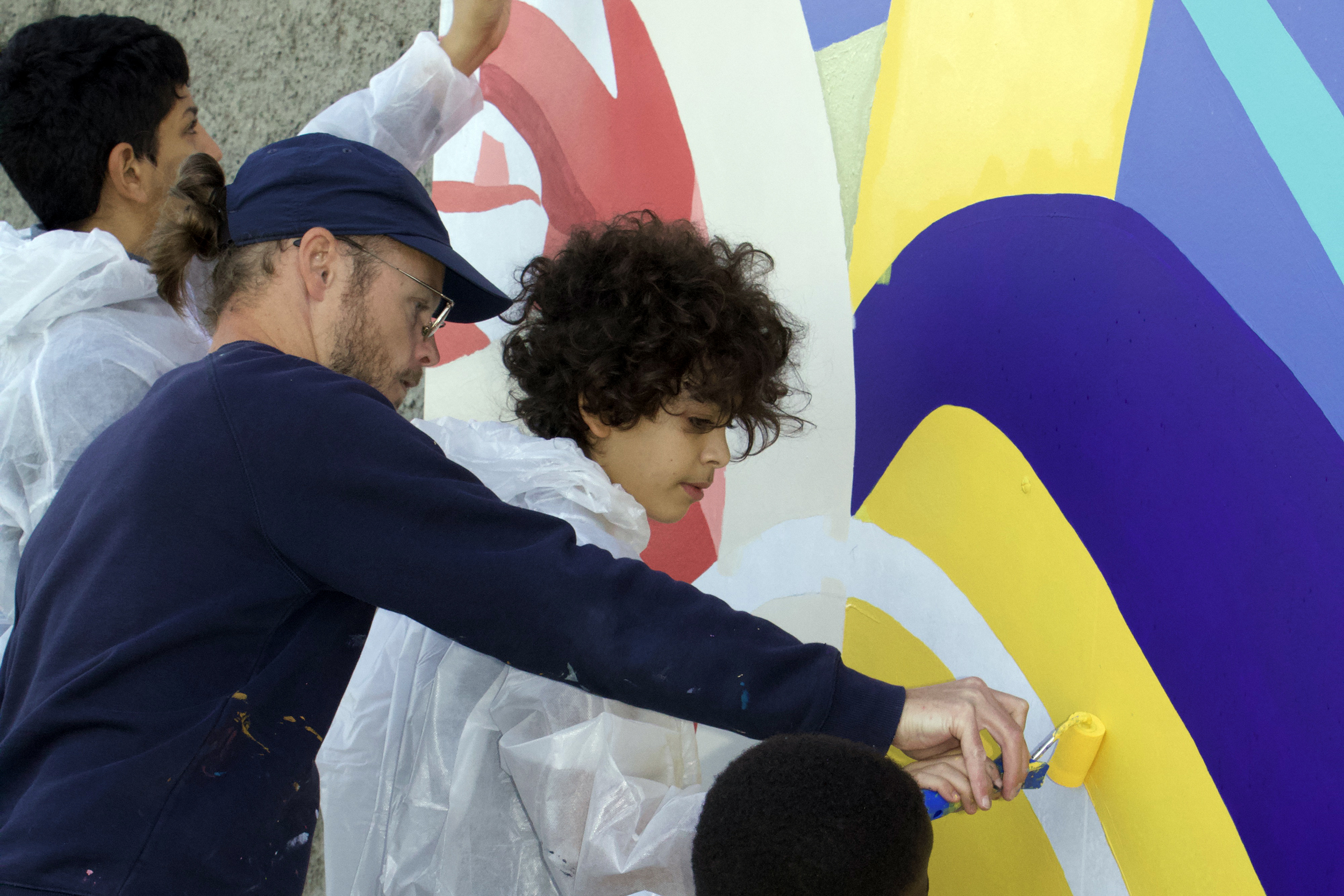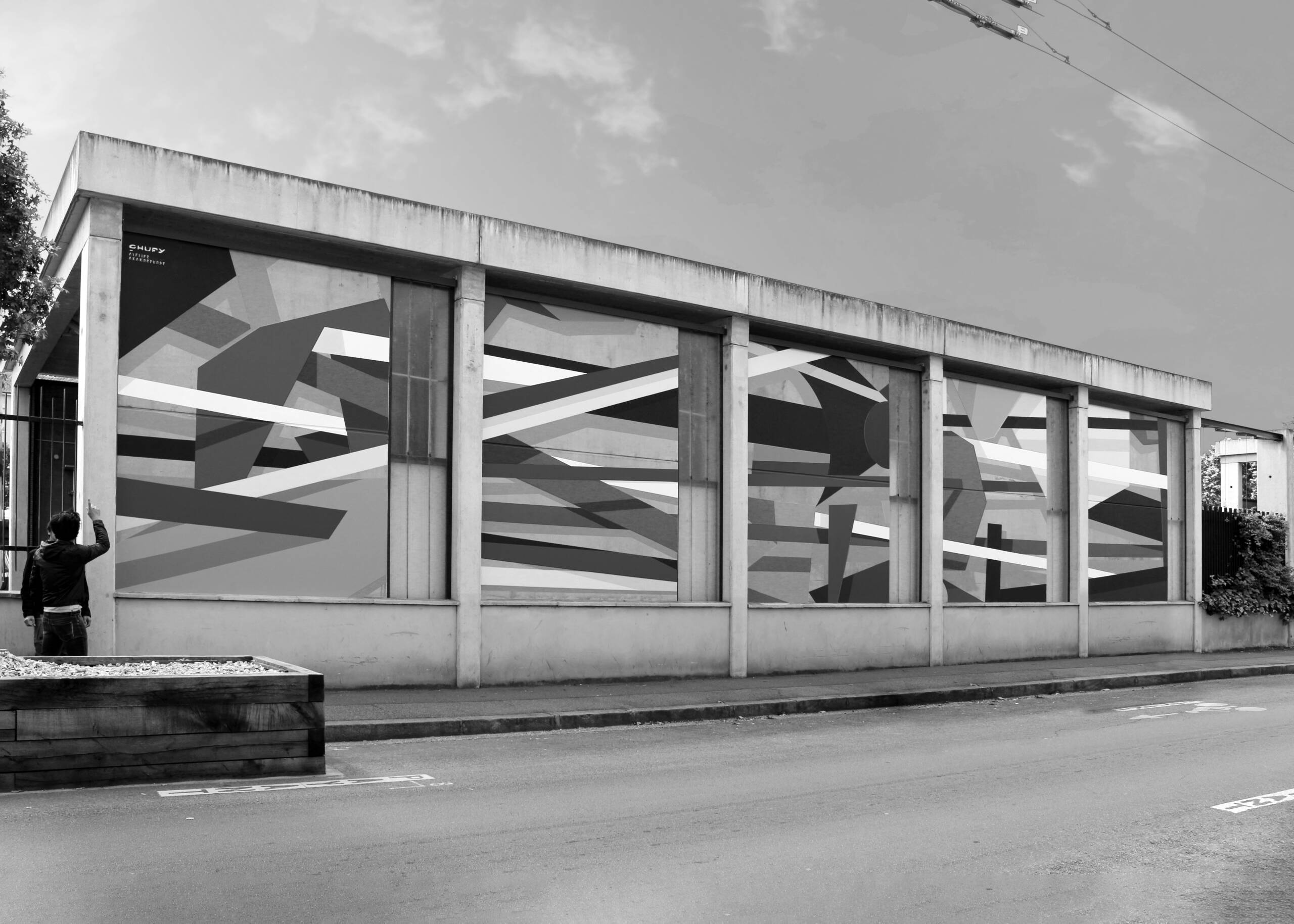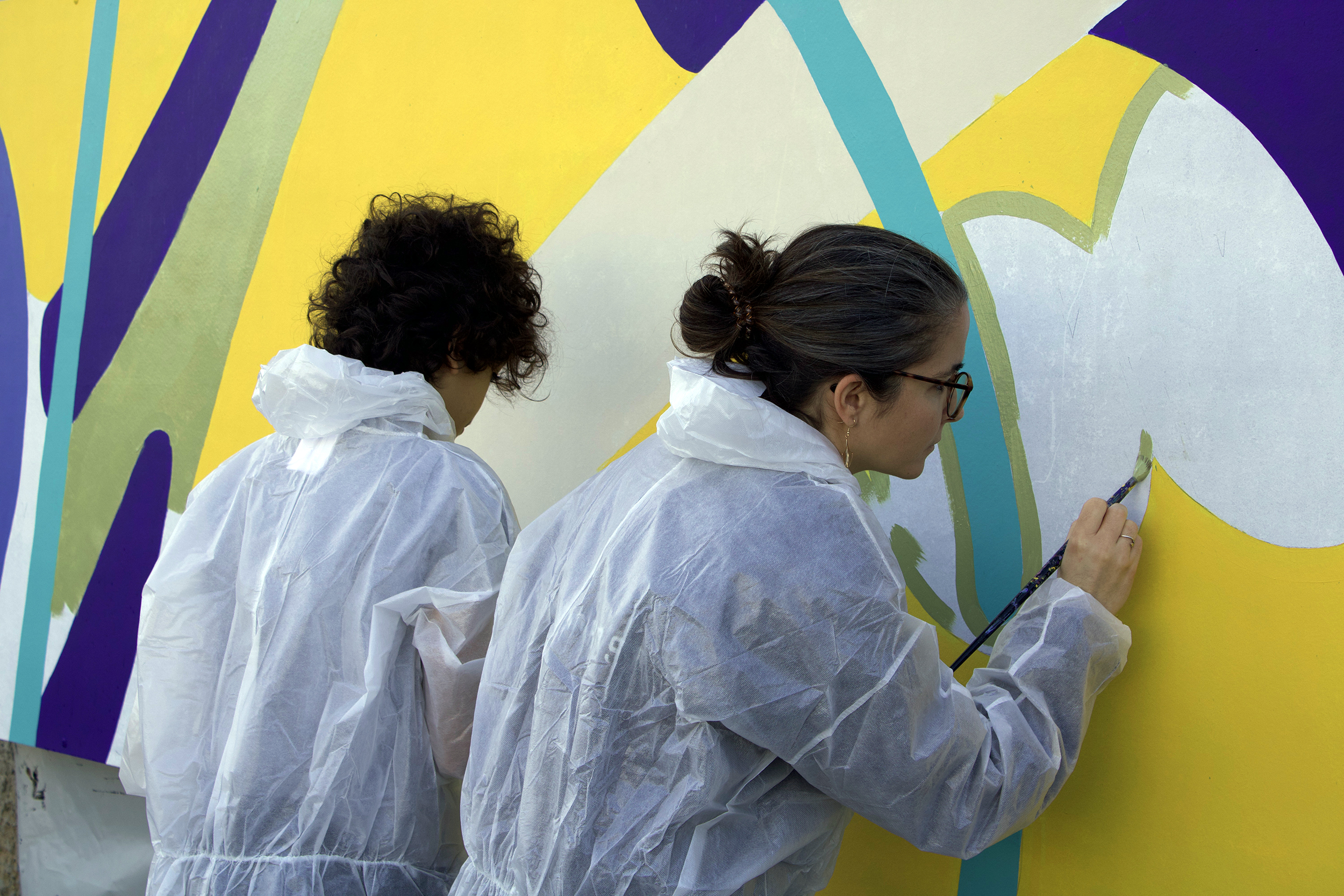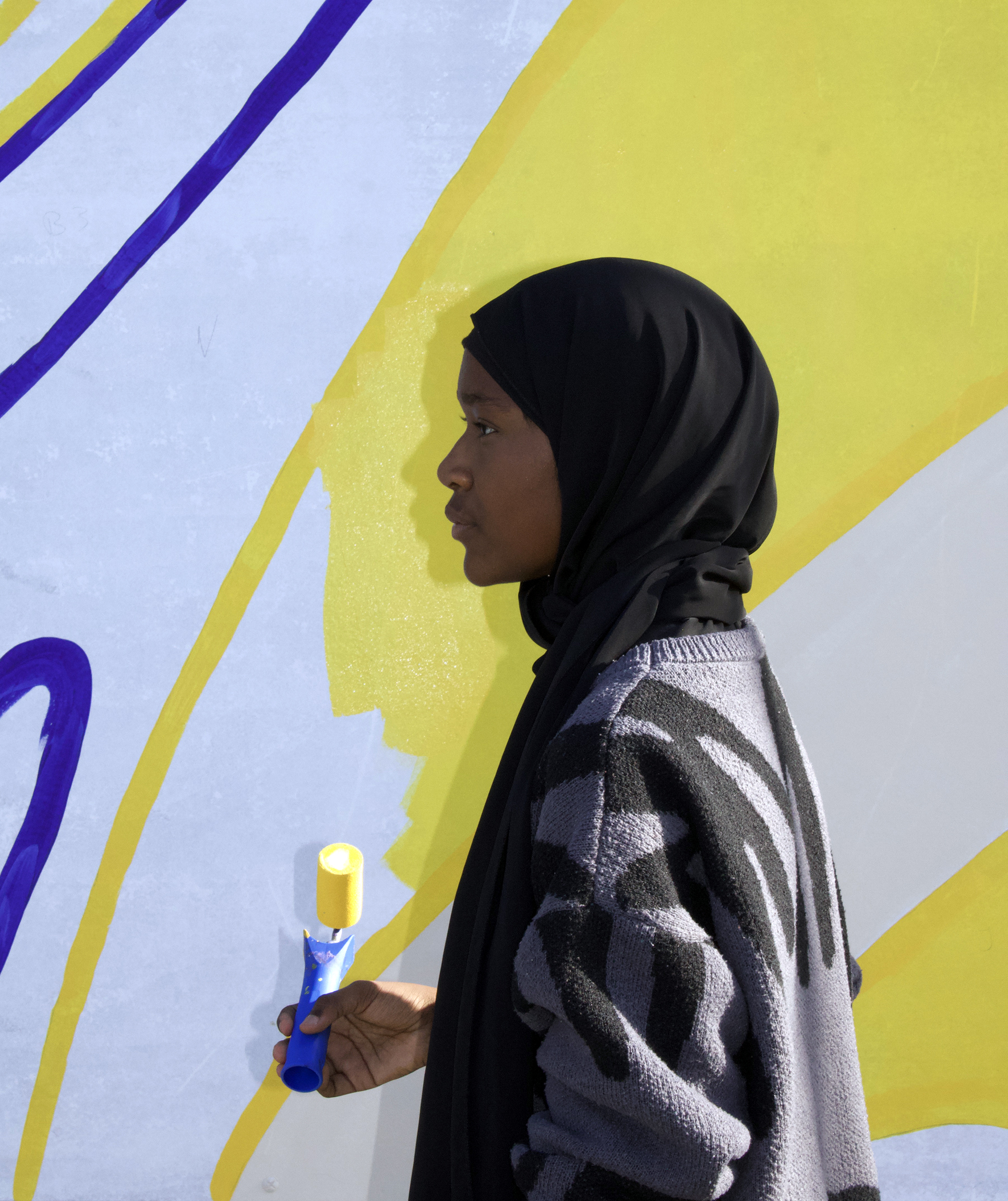 8 panneaux réalisés par une 20aine de bénéficiaires : Forum réfugiés, Centre Social Gisèle Halimi & Sauvegarde69, représentant des portraits des résidents du quartier.