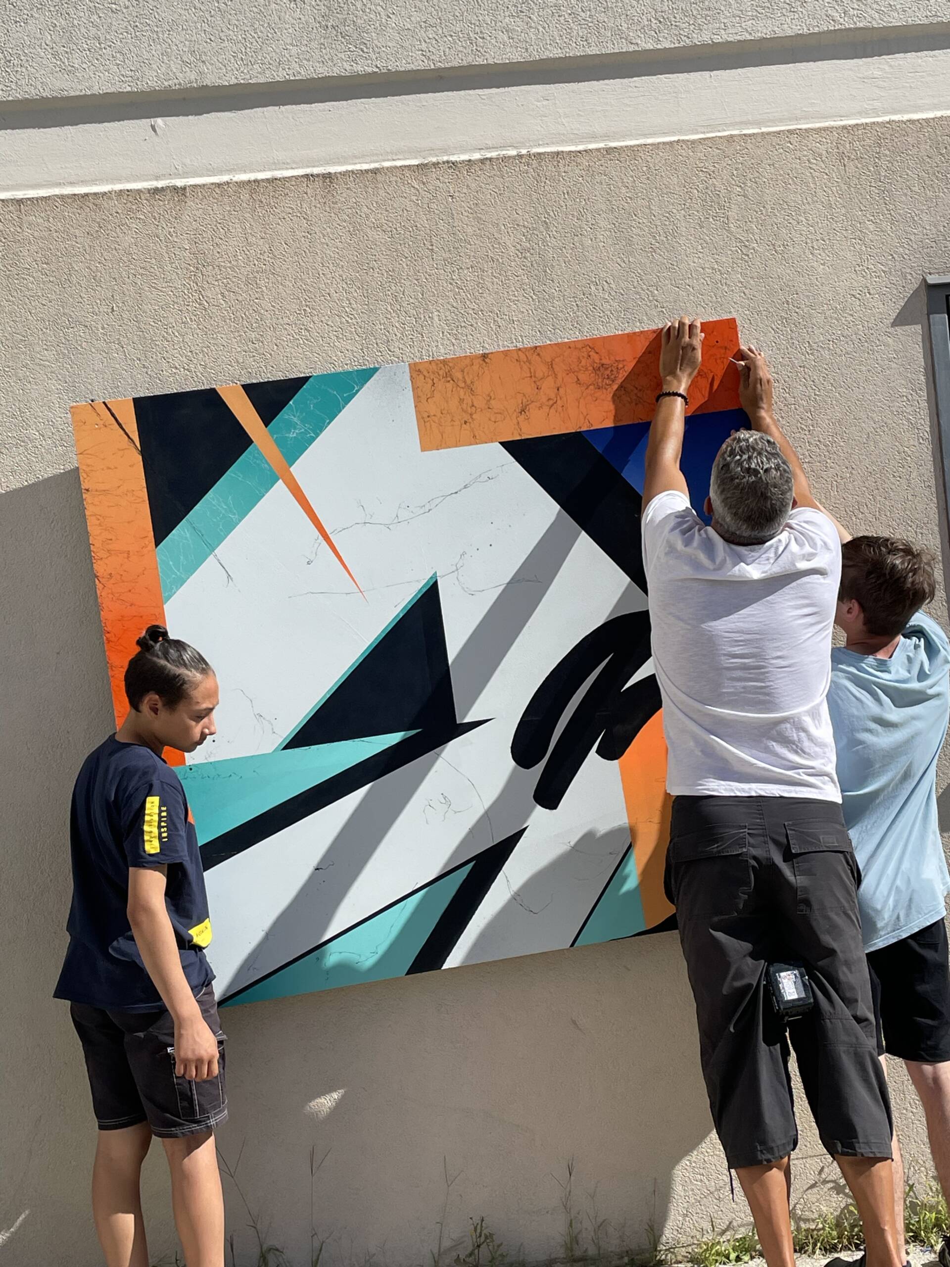 4 tableaux réalisés par les jeunes de la MJC Ménival pour des logements sociaux.