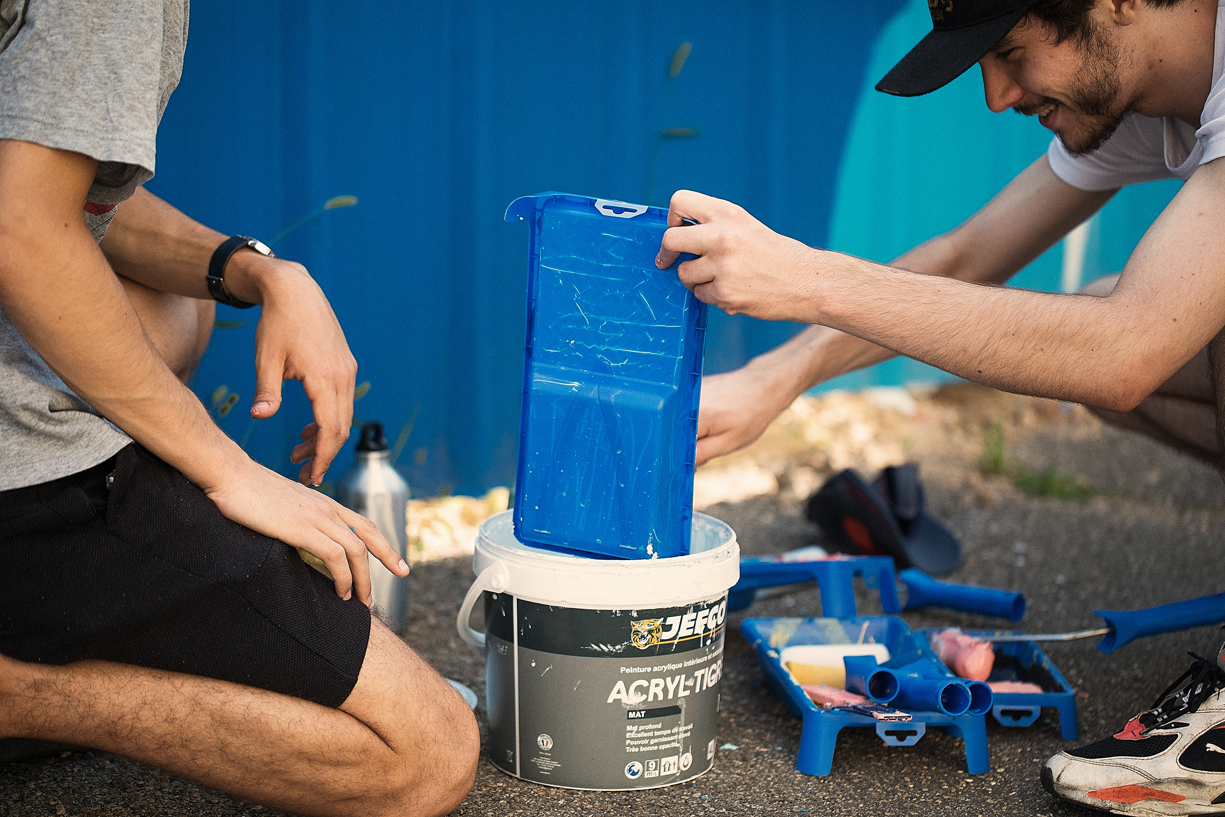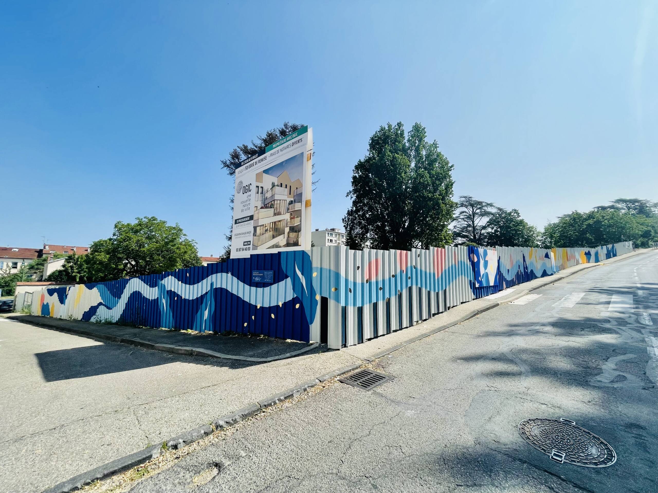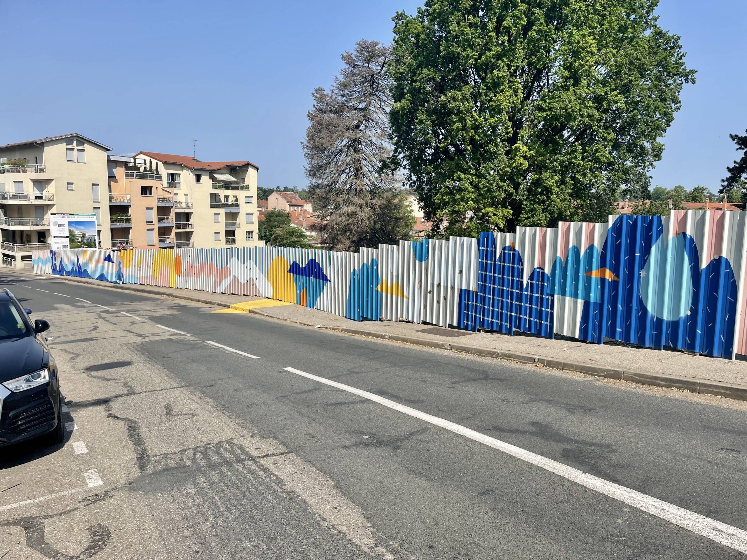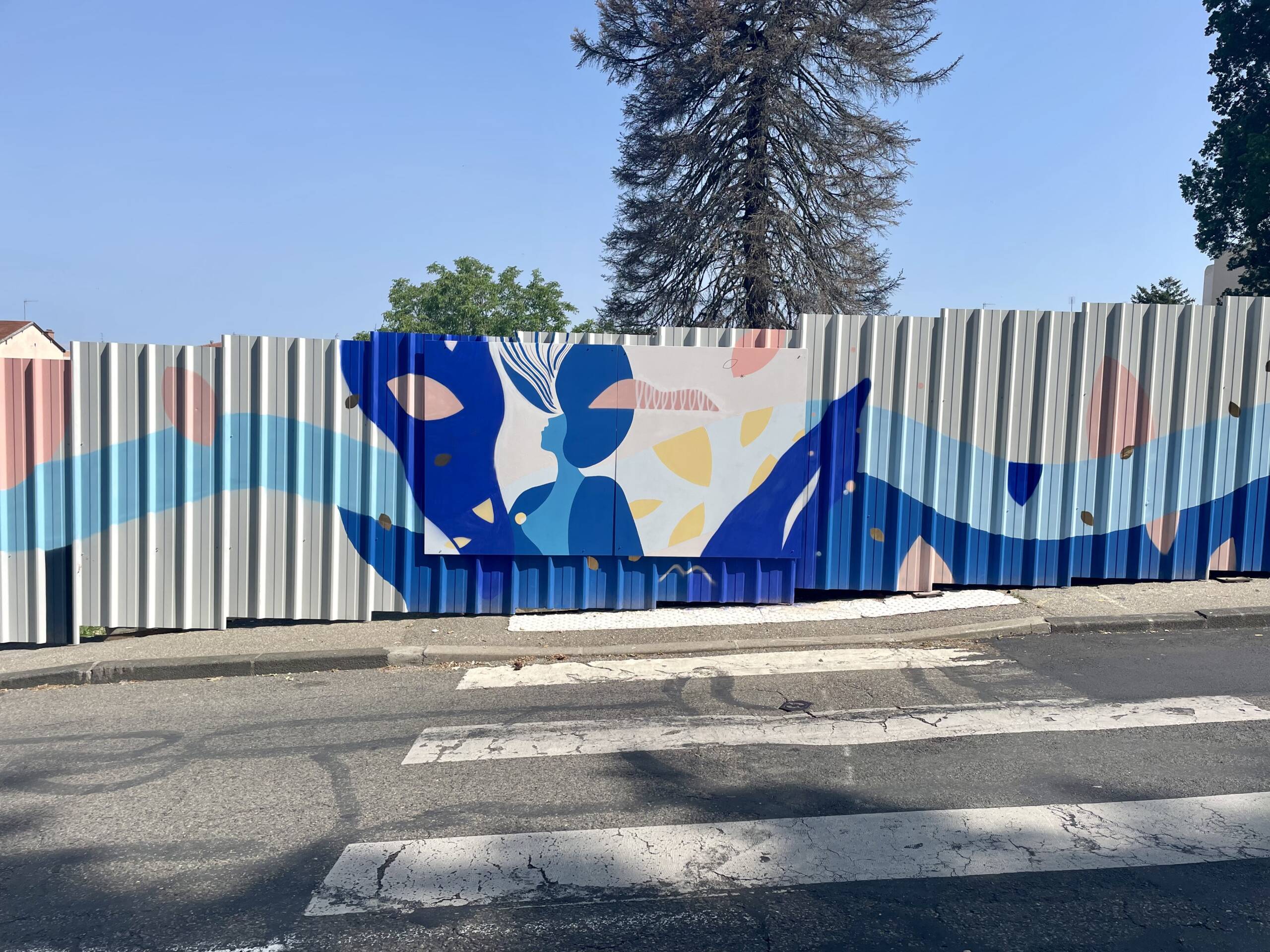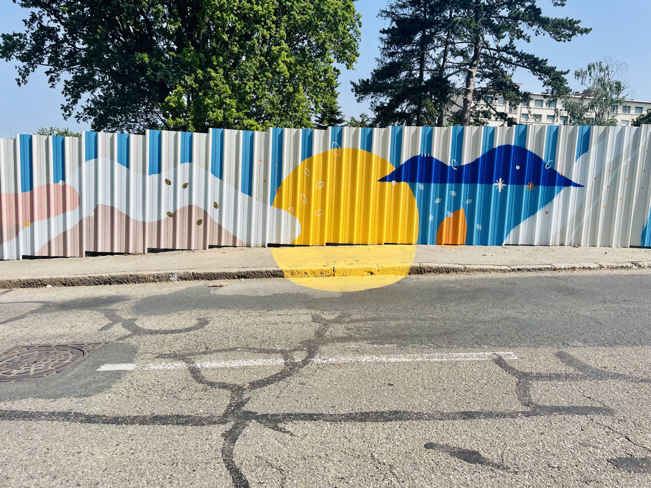 Fresque de 100m linéaire sur tôle ondulée avec les jeunes de "l'Année Lumière"