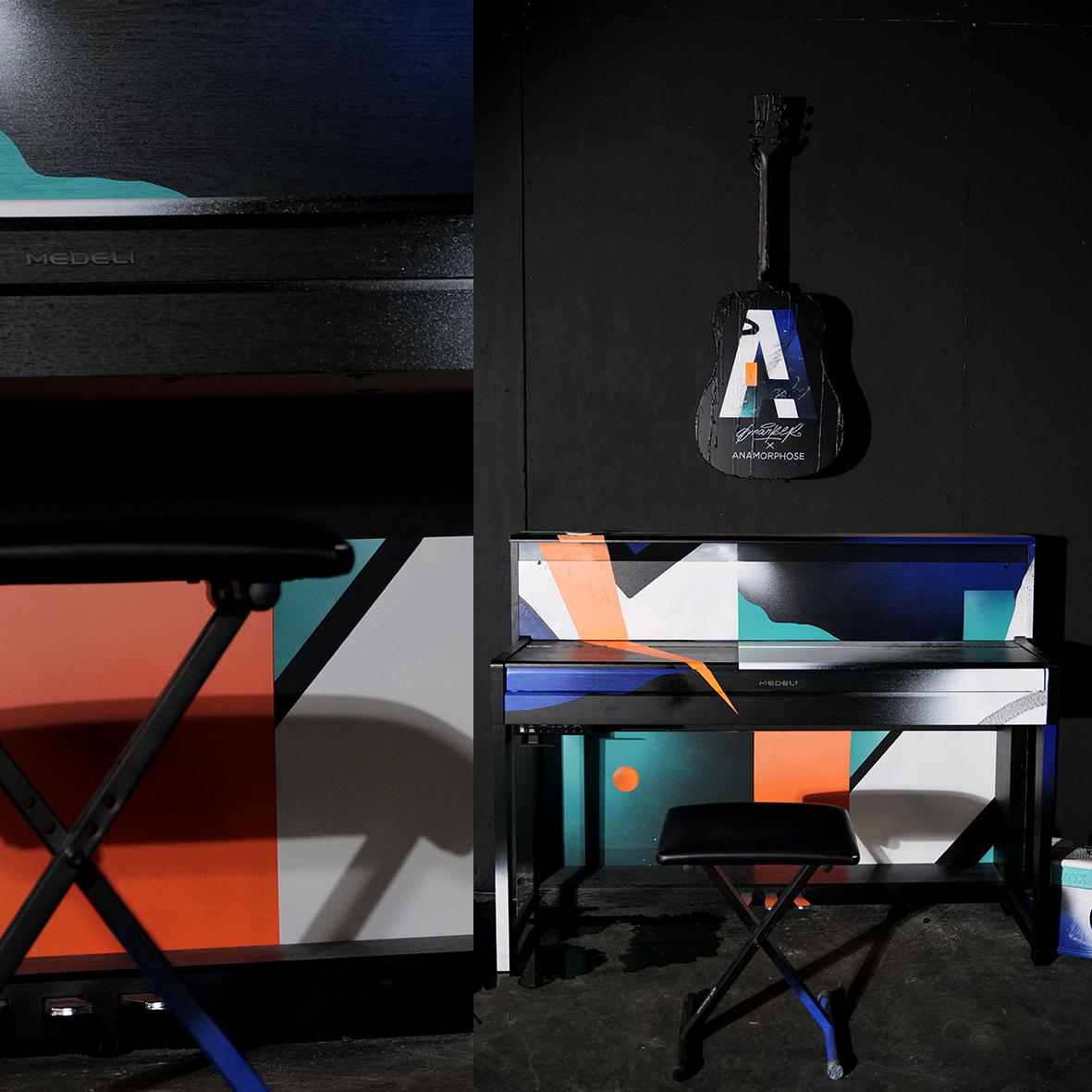 Installation artistique participative pour PFF. Customisation d'instruments de musique par les jeunes de la Fondation OVE.